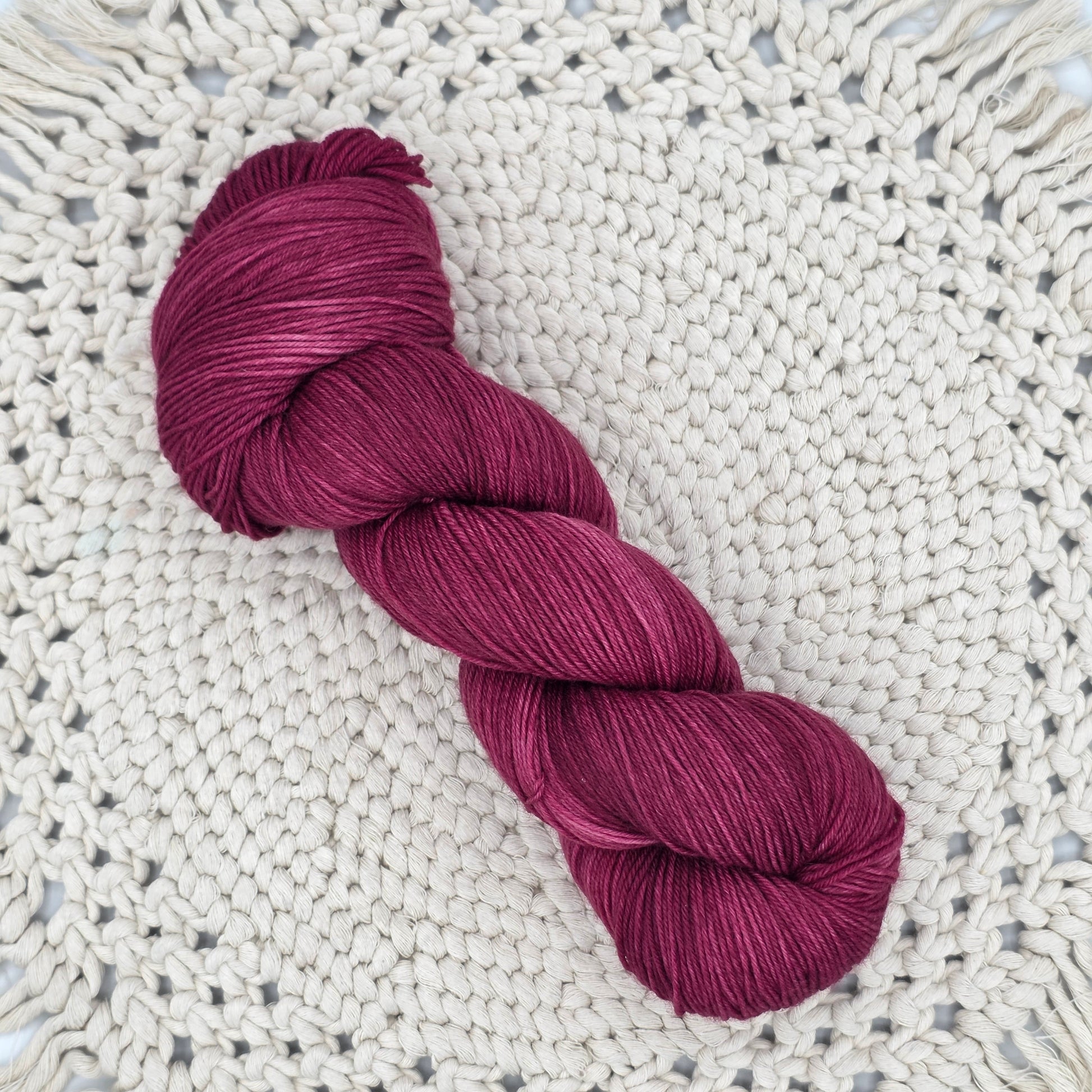 This one leans warm, juicy, and full of berry depth β raspberry, plum, and cherry wine blending into a rich, moody swirl. Itβs soft, smooth, and easy to work with. Every skein is hand-dyed by me in small batches for natural variation and personality. Perfect for socks, shawls, hats, and anything that needs a bold, romantic pop of color.