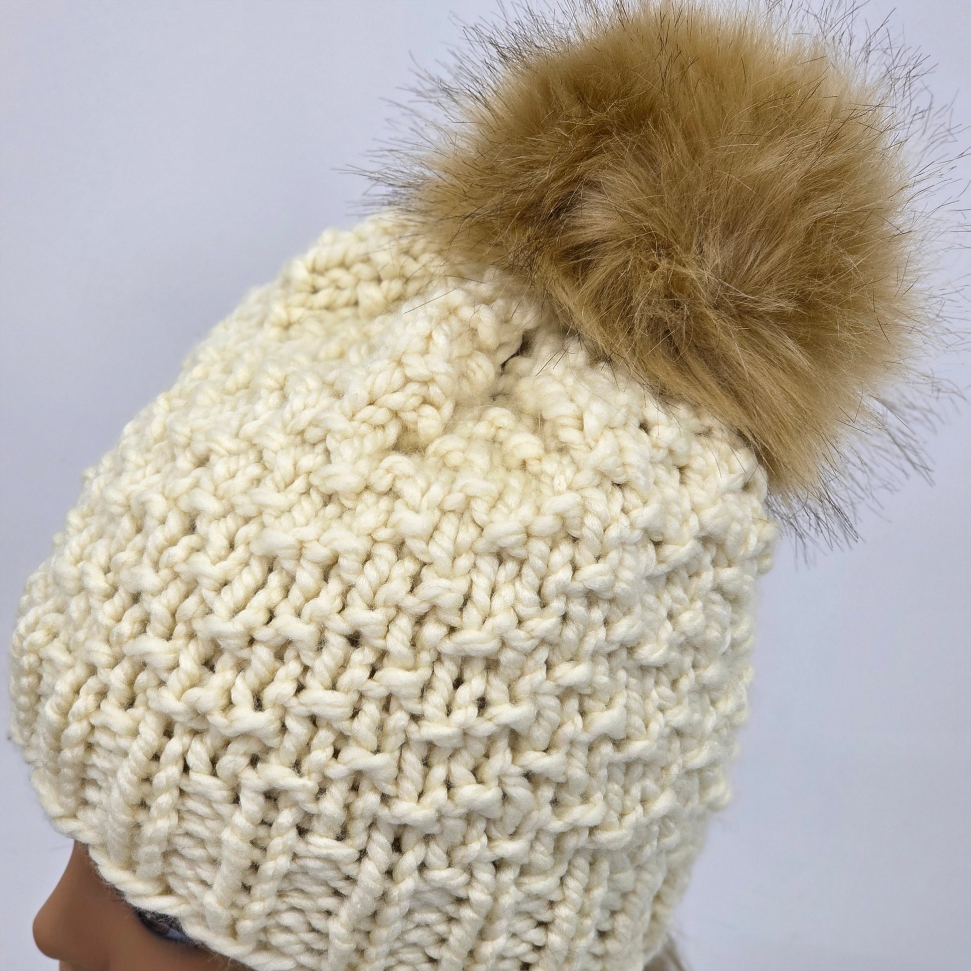 Soft, warm, and perfectly rustic — this creamy ivory beanie feels like quiet winter mornings in a cozy cabin. The chunky stitches give it that textured, handmade charm, while the fluffy faux fur pom adds the perfect woodland touch. I handcraft each beanie slowly and intentionally, using plush yarn that’s warm, stretchy, and made for everyday comfort.