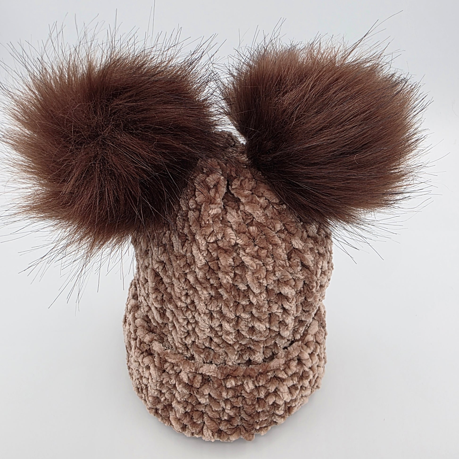 🤎 Mocha Velvet Double Pom Baby Beanie