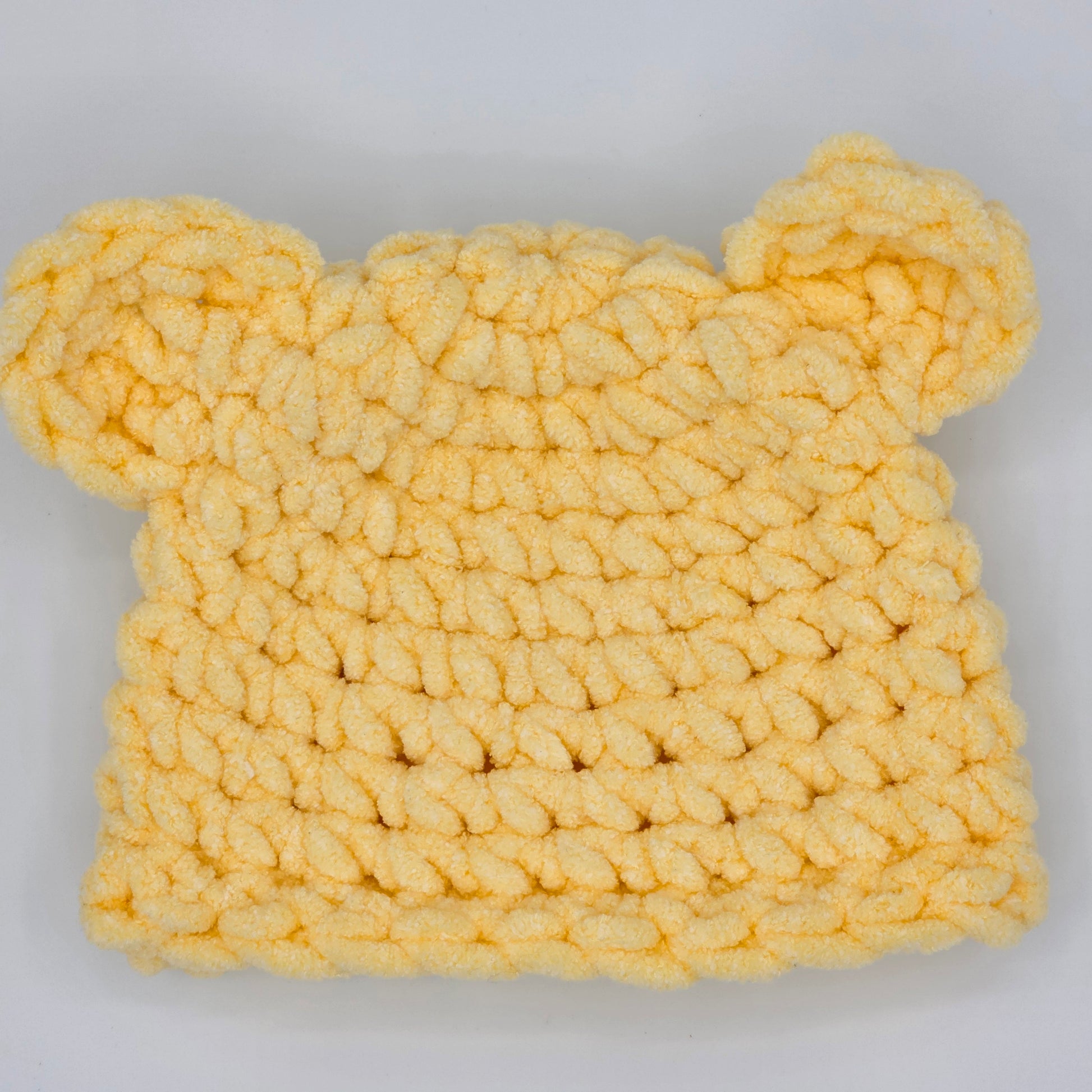 Bright, soft, and full of charm β this plush newborn beanie is crocheted with thick, cloudlike yarn in a warm buttery yellow and topped with sweet teddy ears. Itβs cozy, stretchy, and handmade in small batches so each one feels extra special. Perfect for newborn photos, baby showers, or those first snuggly moments home from the hospital.
